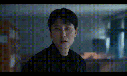 One of Father Kim’s crew (Detective Goo Dae-young, played by Kim Sung-kyun) is full-on crying — not quiet tears, but sobbing-into-dinner crying — while his teammate awkwardly pats him and keeps feeding him like a sad baby bird.
